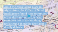 Amid the crisis taking place in Afghanistan, the Office of Naval Intelligence found time to remind active duty and retired service members not to say anything unflattering about the president’s deadly debacle.